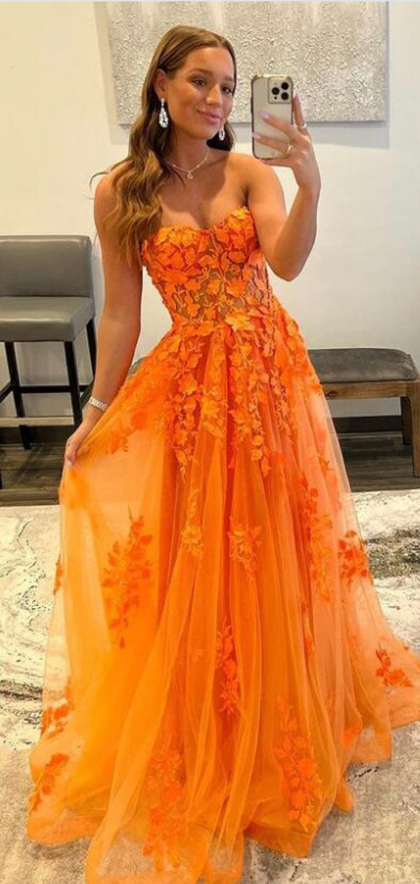 Orange Lace Strapless Custom Unique Mermaid Fashion Party Evening Long Prom Dresses PD019